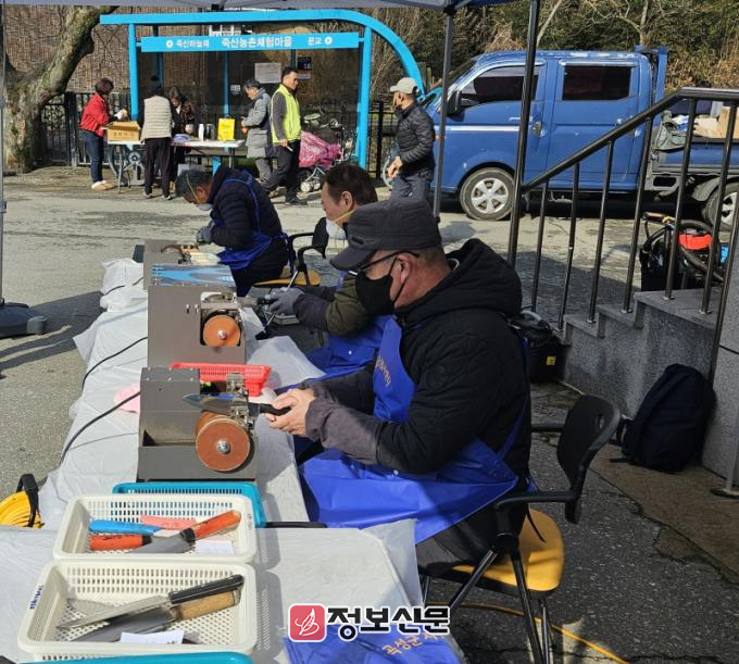 2025년 첫 번째 방문인 만큼 주민들에게 많은 호응을 얻었는데 그중 가장 큰 눈길을 끄는 건 단연 ‘다림돌봉사단’의 칼갈이 서비스였다.
