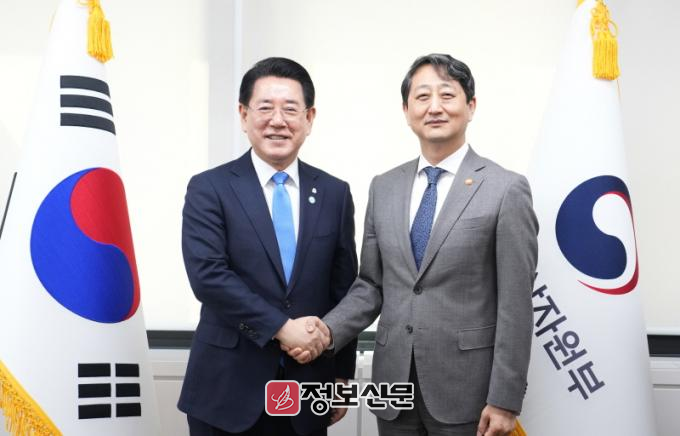 ![]() 김영록 전라남도지사가 7일 정부서울청사에서 안덕근 산업통상부 장관을 만나 솔라시도 AI 슈퍼클러스터 허브 등 도 현안 해결을 위한 건의를 하고 있다.