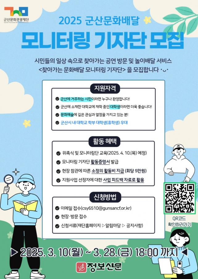 ![]() 군산문화관광재단, 군산 문화 배달 사업 시민 평가단 모집 |