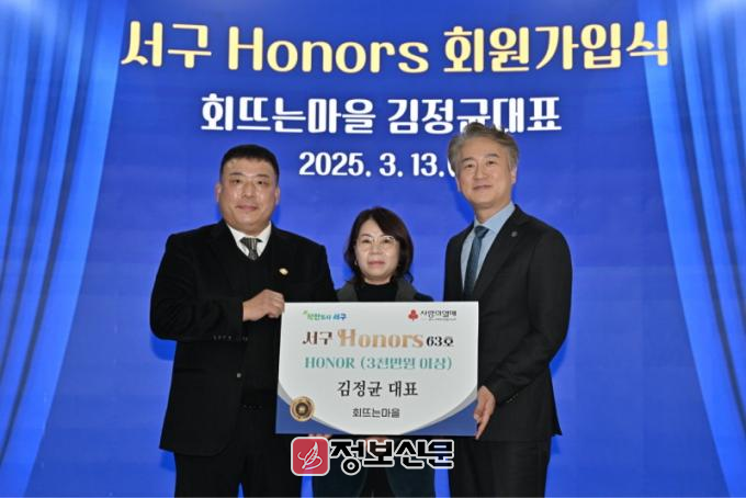 서구는 13일 금호동 ‘회뜨는 마을’ 김정균 대표와 서구아너스 회원 가입식을 진행했다. 김 대표는 연간 600만원씩 5년간 3천만원 후원을 약속했다.