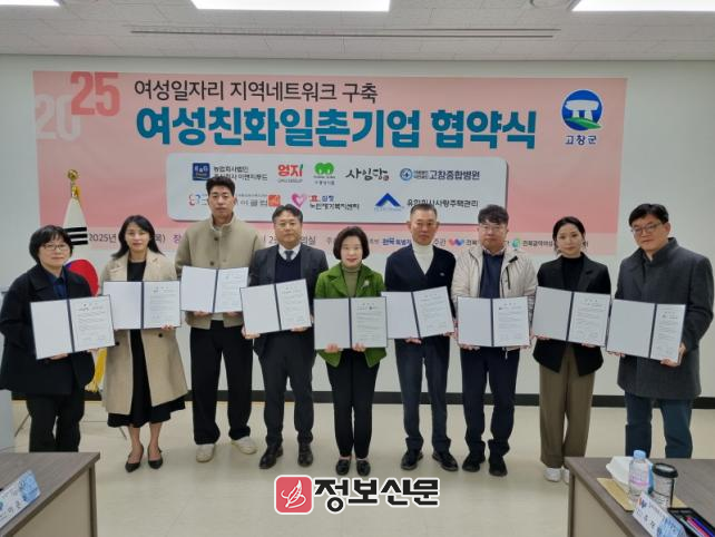 여성친화 일촌기업은 농업회사법인 주식회사 이앤지푸드(대표 박미자), ㈜엄지식품(대표 김상형), 농업회사법인(주)풍성식품(대표 오통열), 사임당푸드(대표 조해주), 의료법인석천재단고창병원(대표 조남열), 고창시니어클럽(대표 최창근), 효심청노인재가복지센타(대표 이상훈), 유한회사 사랑주택관리(대표 한승일) 등이다.