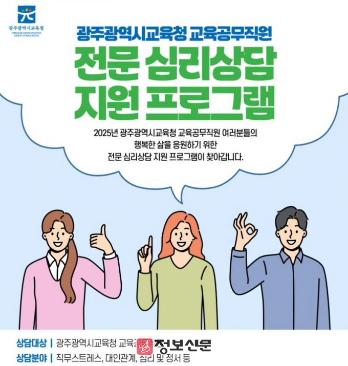 ![]() 광주시교육청, 교육공무직원 심리‧정서 안정 프로그램 지원사업 추진 |