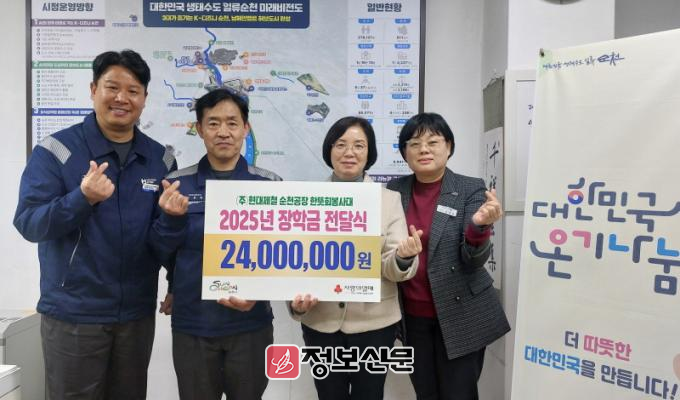![]() ㈜현대제철 순천공장 한뜻회봉사대, 26년째 장학금 온기나눔 |