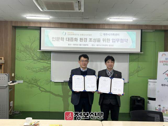 ![]() 제주대 인문과학연구소, 제주시가족센터와 인문학 대중화 업무협약 체결