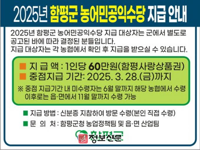 ![]() 함평군, 농어민 공익수당 지급 시작 |