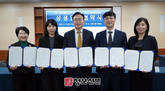 나주시(시장 윤병태)는 지난 14일 시청사 이화실에서 ㈜뉴트리어드바이저, 이화여자대학교, 충북대학교, 경상국립대학교와 ‘푸드업사이클링 실용화를 위한 상생 업무협약’을 체결했다고 17일 밝혔다.