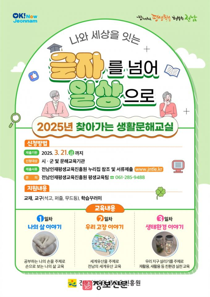 ![]() 전라남도, 찾아가는 생활문해교실 운영기관 모집 |