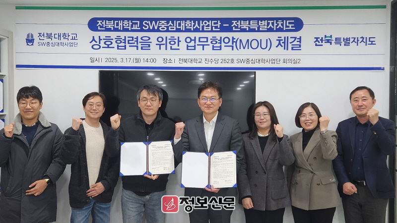 전북자치도는 17일 전북대학교 진수당에서 전북대 SW중심대학사업단과 '오픈소스 기반 생성형 AI 시스템 자체구축을 위한 업무협약'을 체결했다고 밝혔다.