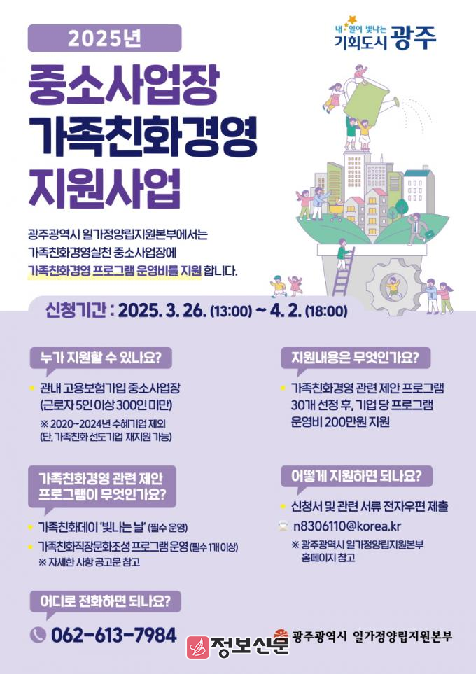 ![]() 광주광역시, 중소기업 가족친화경영 지원사업 공모 |
