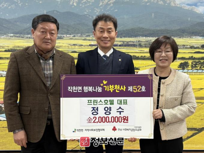 ![]() 강진 프린스호텔 정양수 대표, 고향 사랑 담아 200만원 기탁 |