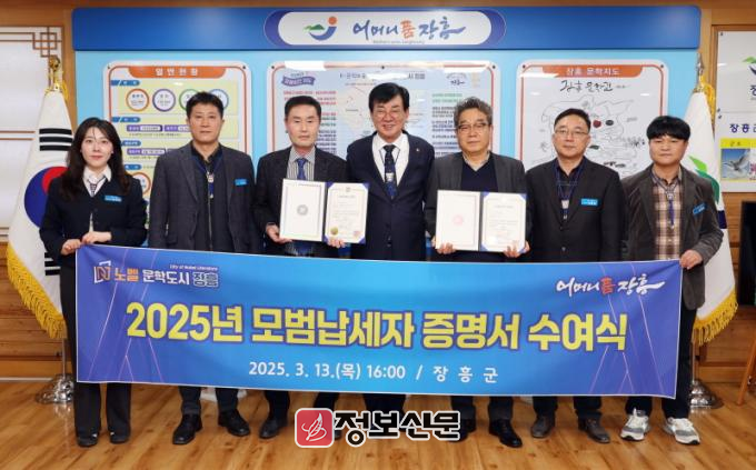올해 장흥군의 모범납세자는 최근 3년간 체납 사실이 없고 연간 3건 이상의 지방세를 납부기한까지 전액 납부한 개인과 법인으이다.