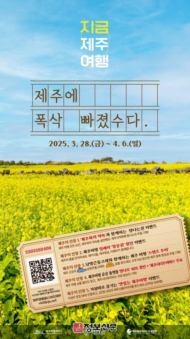 ![]() 제주특별자치도, 제주가 드리는 봄 선물 제주에 폭삭 빠지는 특별한 10일 |