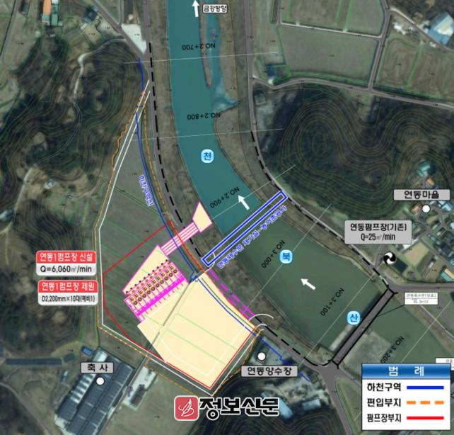 '연동지구 재해예방사업(총사업비 550억 원)'은 펌프장 1개소를 신설하는 내용이다. 최근 자연재해위험개선지구로 지정됐으며, 예산을 확보해 실시설계 용역에 나설 계획이다. 이와 함께 한국농어촌공사는 연동 제수문 수리시설을 다시 설치하기 위해 기본설계를 진행하고 있다.