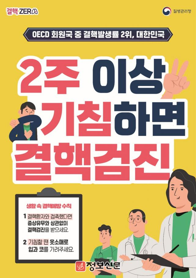 결핵은 2급 법정 감염병으로 우리나라 법정 감염병 중 사망률 1위를 차지하며 기침, 재채기 등으로 배출된 결핵균이 공기를 통해 다른 사람에게 감염되는 질병이다.