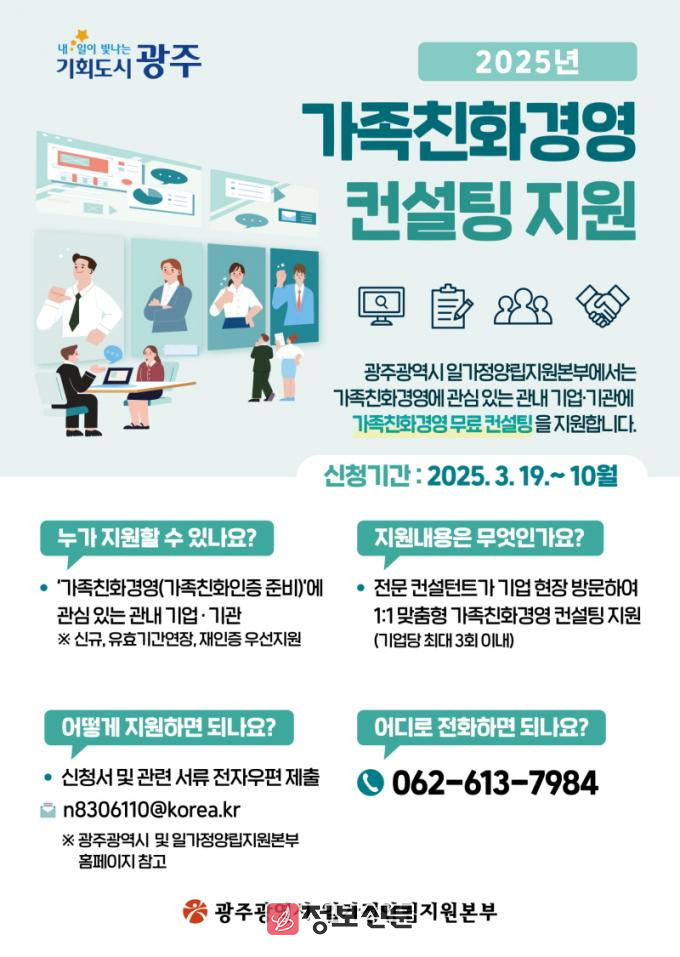 ![]() 광주광역시, 가족친화경영 컨설팅 참여기업 및 기관 모집 |