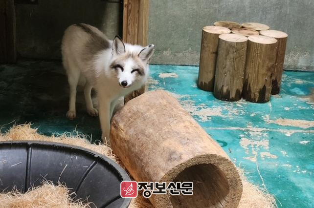 주인공은 지난달 11일, 덕진체련공원 내에서 발견된 마블폭스(1살 정도로 추정되는 수컷 여우)로, 전주동물원은 전주시 유기동물보호센터에서 인계받아 지난 17일부터 일반에 공개하고 있다.