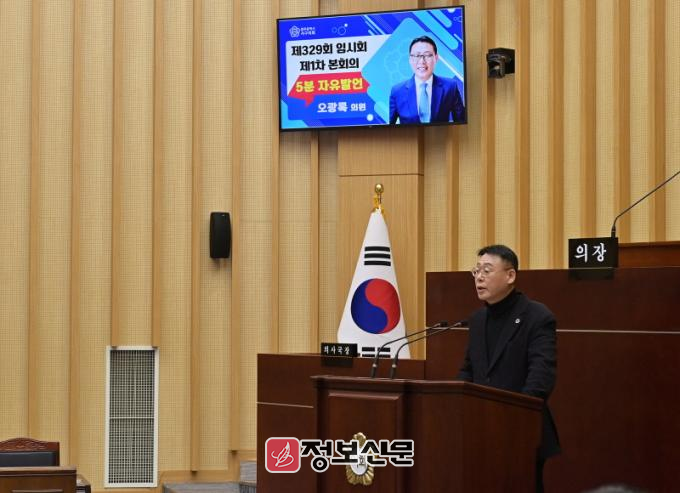 ![]() 광주 서구의회 오광록 의원이 제329회 임시회 중 1차 본회의에서 발언하고 있다. (광주 서구의회 제공)
