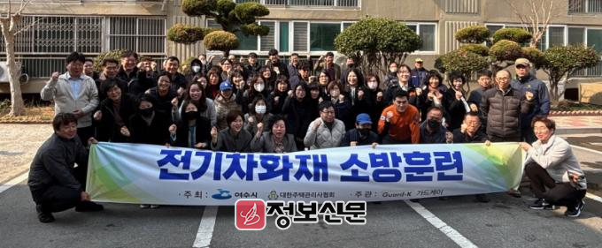 ![]() 여수시(정기명 시장)는 지난 20일 여서동 경남2차 아파트에서 ‘공동주택 전기차 화재 대응 훈련’을 실시했다고 밝혔다. |