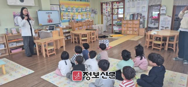 이 프로그램은 영유아기부터 건강한 생활습관을 형성할 수 있도록 관내 어린이집 및 유치원 17개소를 대상으로 흡연‧음주 예방, 신체활동, 영양(비만예방) 등 통합교육을 제공하고 있다.