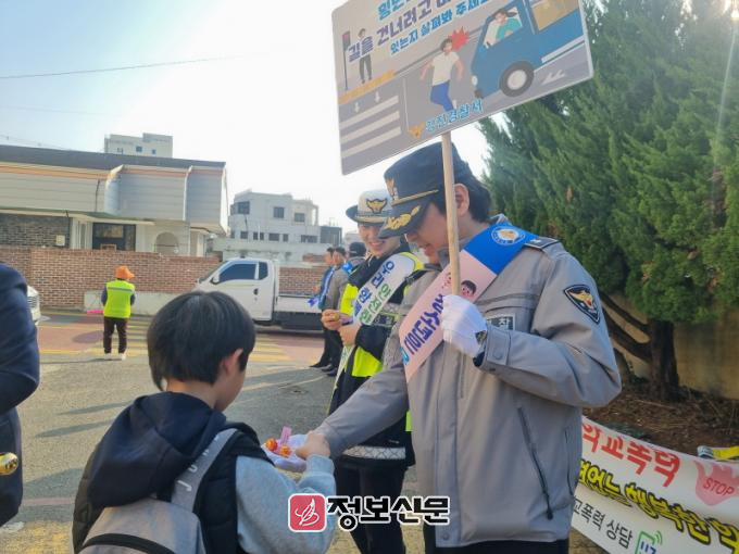 캠페인 참가자들은 어깨띠와 현수막, 피켓을 활용해 교통안전 메시지를 전달하며 운전자들에게 어린이 보호구역 내 서행 및 안전운전의 중요성을 강조했다. 또한, 민간단체 주도로 막대사탕을 나눠주며 아이들에게 친근하게 다가가는 이벤트를 진행하는 한편 강진경찰서와 녹색어머니회가 학교 앞 교통지도를 담당해 등굣길 아이들의 안전을 관리했다.