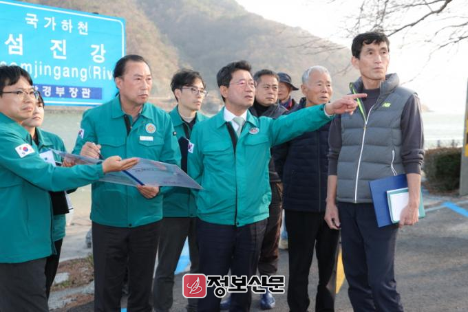 정 시장은 먼저 옥곡면 시민과의 대화에서 건의된 현장 2곳을 찾았다. 처음 방문한 곳은 옥곡 백양~수평을 잇는 도로가 급커브로 위험해 선형 개량 요구가 있던 현장이다.