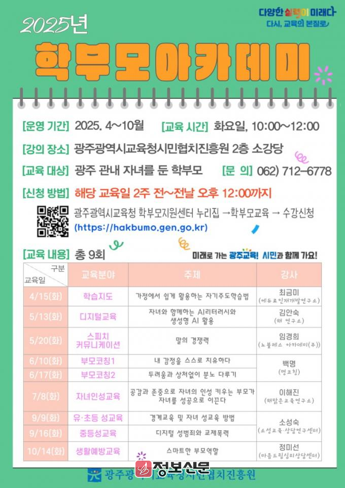 ![]() 광주시교육청시민협치진흥원, ‘학부모아카데미’ 운영 |