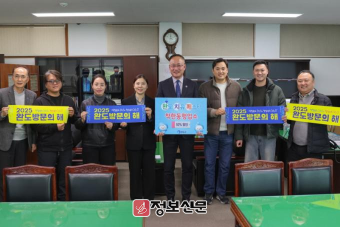 이에 관내 소상공인들은 ‘2025 완도 방문의 해’를 맞아 관광객에게 더 많은 혜택을 제공하고자 업체 이용 할인에 뜻을 모았다. 카페와 숙박업소, 특산품 판매장 등 관내 8개 업체 대표는 관광객이 업체 이용 시 10%를 할인해주기로 했으며, 업체와 할인