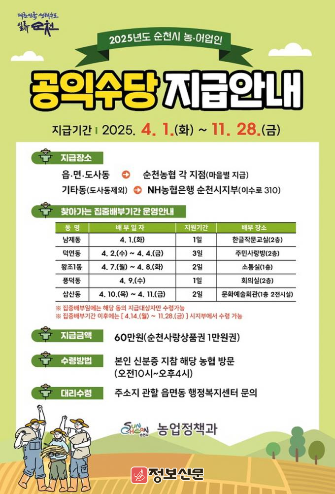 ![]() 순천시, 2025년 농어민 공익수당 지급 |