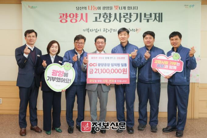 OCI 광양공장은 광양시 고향사랑기부에 동참한 올해 첫 기업체로 2년 연속 고향사랑기부를 실천하며 지역사회에 훈훈함을 전했다.