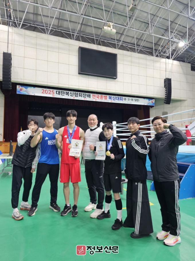 ![]() 화순군청 복싱부, 2025 대한복싱협회장배 전국종별복싱대회 메달 3개 획득 (왼쪽부터 성현태 선수, 선현욱 선수, 국승준 선수, 박구 감독, 박초롱 선수, 서동근 선수, 박지선 코치) |