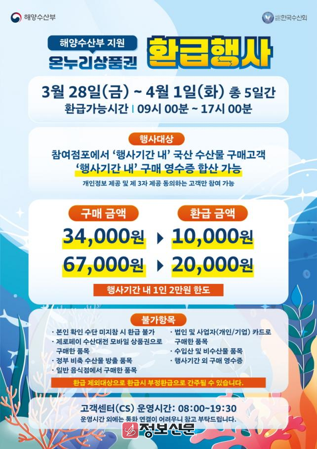 온누리상품권 환급행사에 참여를 원하는 고객은 ‘행사 참여 점포’라는 안내판이 게시된 점포에서 국산 수산물, 젓갈류 등 가공식품 등을 일정 금액 이상 구매하면 된다.