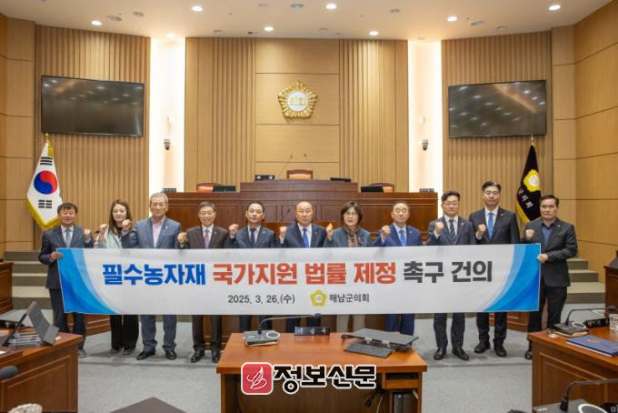 ![]() 해남군의회, 필수농자재 국가지원 법률 제정 촉구 건의안 가결 |