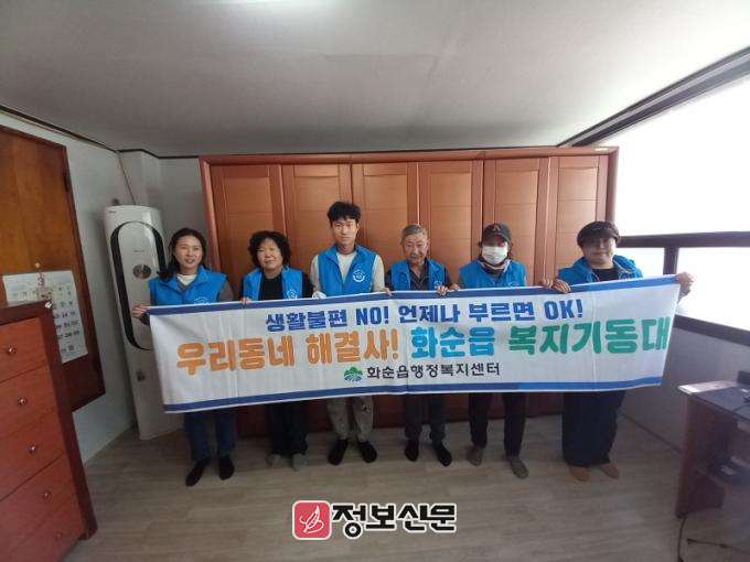 화순군 화순읍 복지기동대는 노인, 장애인 가정의 현장 생활 실태조사를 통해 드러난 일상생활의 불편을 해소하기 위해 소규모 수리 또는 도배·전기·설비 분야 전문가 15명으로 구성되어 활동하고 있다.