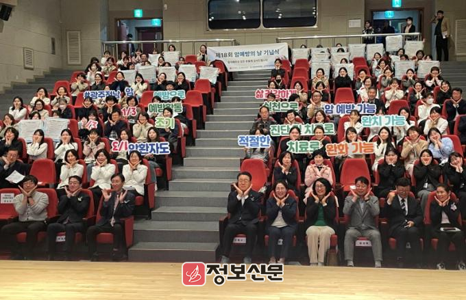 발표 이후 지난해 암평가대회 우수기관인 화순군·광주동구 보건소장의 선창으로 참석자들의 국민 암예방수칙을 낭독했다. 이번 기념식 부대행사로 암예방·관리 캐릭터 ‘암행이 포토존’과 홍보부스에서 통계집, 홍보물, 리플릿 등을 통해 시군 간 사업정보를 공유했다.