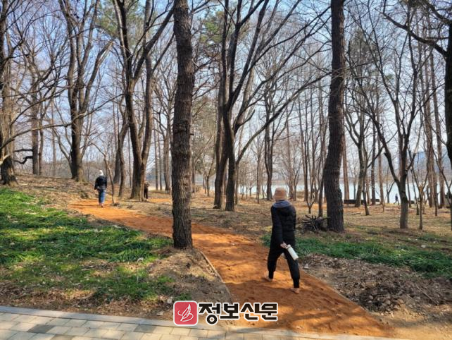 이번 정비사업은 자연 길 그대로 살려 보행에 지장이 없도록 산책 노면과, 길 주변의 환경을 정돈했으며 사람들이 함께 모여 즐길 수 있는 황토체험장과 세족장을 설치했다.