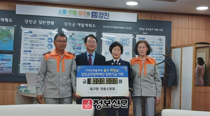 강진군민장학재단 관계자는 "지역 안전을 위해 힘쓰는 의용소방대원들이 이번에는 지역 인재 육성을 위한 장학금 기탁을 통해 또 다른 나눔을 실천해 주셔서 감사드린다"며 "소중한 기부금이 학생들의 교육 지원에 유용하게 쓰일 수 있도록 하겠다"고 전했다.