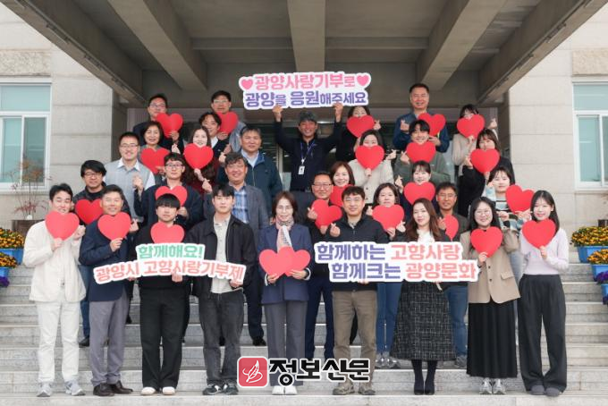 광양시 미래산업국 직원 40여 명은 자발적으로 뜻을 모아 전북 남원시에 고향사랑기부금을 기탁했고, 남원시도 이에 화답해 동일한 금액을 광양시에 기부했다.