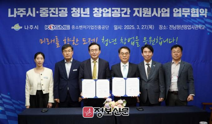 나주시(시장 윤병태)는 지난 27일 빛가람동에 위치한 중진공(이사장 강석진) 전남청년창업사관학교와 ‘청년 창업 공간 지원’ 사업 추진을 위한 업무협약을 체결했다고 28일 밝혔다.