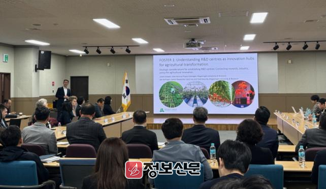 전북자치도는 27일 전북바이오융합산업진흥원에서 와게닝겐 대학 연구진이 ‘전북 도내 디지털 농업 및 디지털 육종 센터 설립 프로젝트’를 소개하는 세미나를 개최했다고 밝혔다.