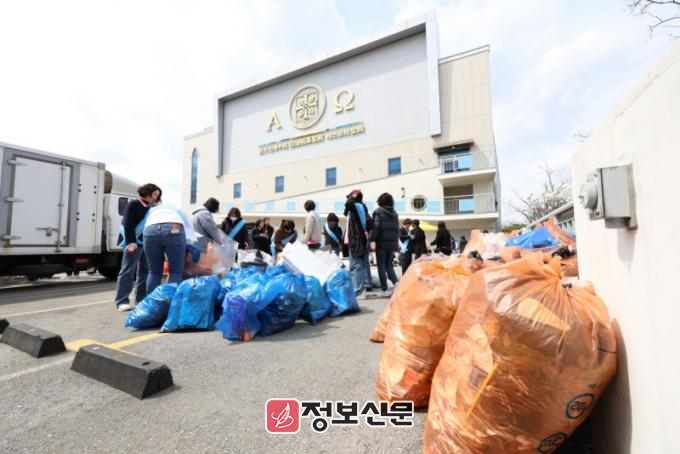 ![]() [사진 제공 = 신천지 광주교회]지난 29일 신천지 광주교회 본부지역 부녀회 성도들이 수거된 쓰레기들을 관급봉투에 담고 있다.