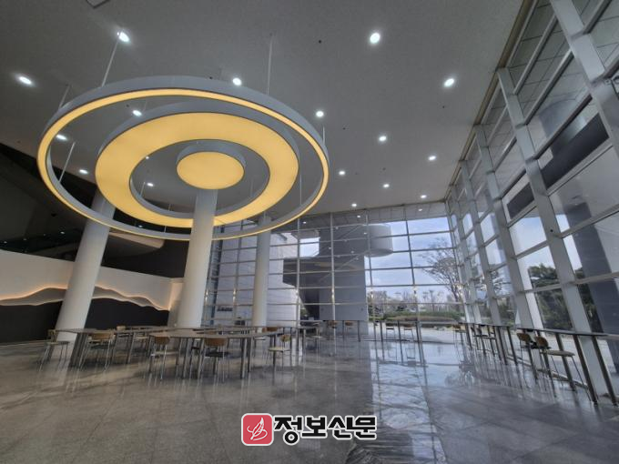 또 영산강 물줄기를 형상화한 독창적인 가변형 테이블을 배치해 평상시에는 시민들의 휴게공간으로, 행사 개최 때에는 테이블을 이동해 공간을 탄력적으로 이용할 수 있도록 했다.