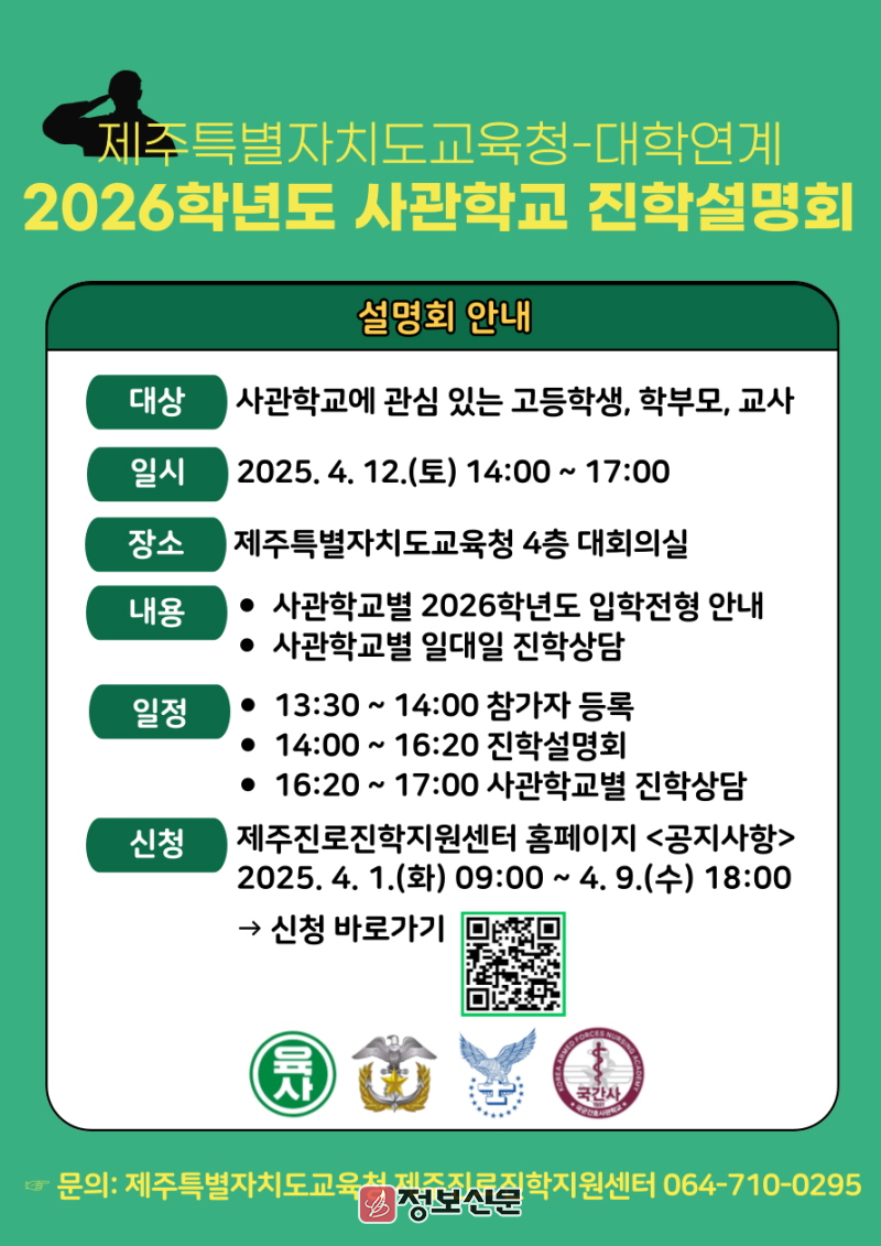 ![]() 제주특별자치도교육청, 사관학교 연계 2026학년도 진학설명회 개최 |