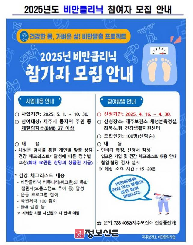 ![]() 제주보건소, 2025년 비만클리닉 시범 사업 운영 |