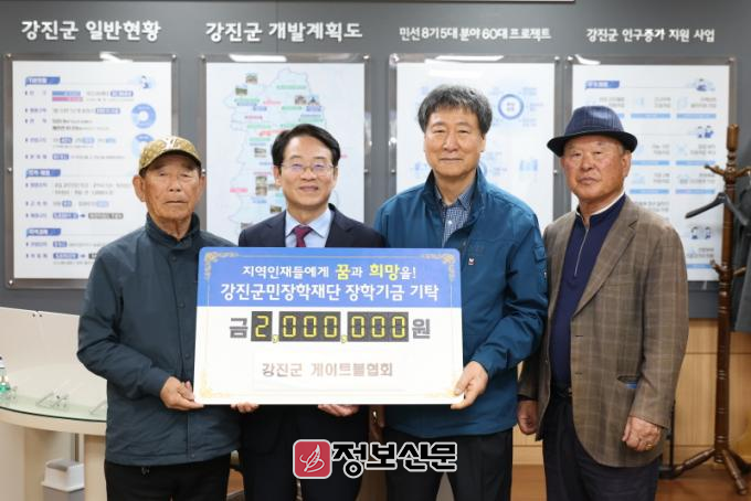 강진군 게이트볼협회는 지역 어르신들이 중심이 된 단체로 꾸준히 2016년부터 매년 손홍식 회장과 회원들이 십시일반 모아 장학금을 기탁하고 있으며 올해에도 2백만 원의 장학금을 기탁했다. 지금까지 10회에 걸쳐 총 2천만 원의 장학금을 기탁 하며 꾸준한 나눔을 실천하고 있다. 손홍식 게이트볼협회 회장은 ”우리 지역의 젊은 인재들이 좋은 환경에서 더 나은 교육 기회를 통해 사회에 긍정적인 변화를 일으키길 바란다“고 말했다.