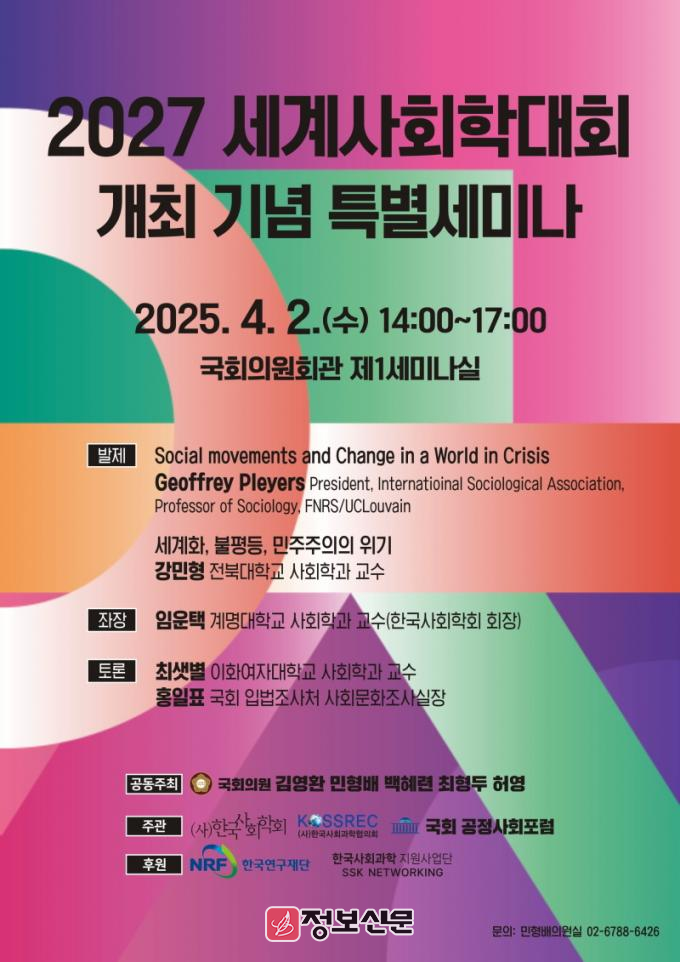 이번 세미나는 2027년 대한민국 광주에서 개최 예정인 세계사회학대회(ISA World Congress of Sociology)를 앞두고, 「글로벌 위기 속 사회변동과 민주주의」라는 주제로 열린다.