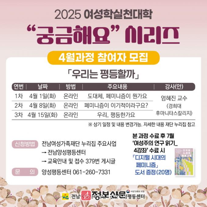 ![]() 전남여성가족재단, 2025 여성학실천대학 개강 |