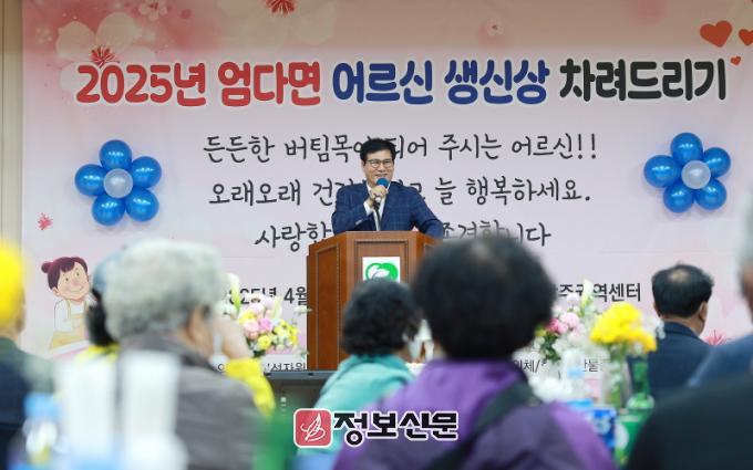 엄다면 자원봉사회는 엄다면 독거 어르신 100여 분을 초청해 정성껏 준비한 음식을 대접하며 생신을 축하했다. 또한 기관·사회단체장들은 축하 영상 메시지로 어르신들의 건강과 안녕을 기원했고, 엄다초등학생들은 생일 축하 노래를 영상으로 전달해 따뜻한 분위기를 더했다.