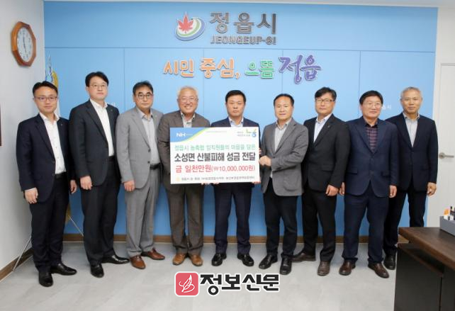 ![]() 정읍시 범 농협, 산불 피해 복구에 성금 1000만원 전달 |