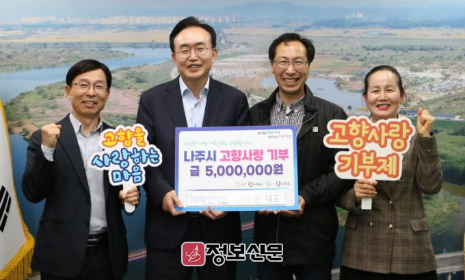 윤송균 대표는 고향사랑기부제가 처음 시행된 2023년 당시 최고 상한액인 500만원을 나주시에 쾌척한데 이어 2024년에는 200만원, 올해 4월 11일 500만원을 기탁함으로서 3년 연속 고향사랑 나눔을 실천하였다.