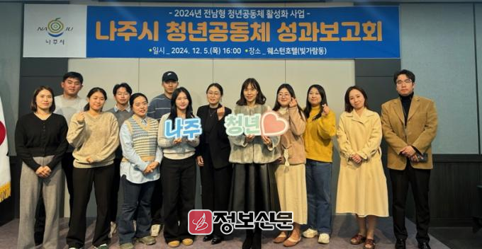 ![]() 나주시가 지역 청년들의 활동 기반 마련과 공동체 활성화를 위한 ‘전남형 청년공동체 활성화 사업’ 참여 단체를 모집한다. 사진은 2024년도 청년공동체 활성화 사업 성과 보고회. (사진제공-나주시) |
